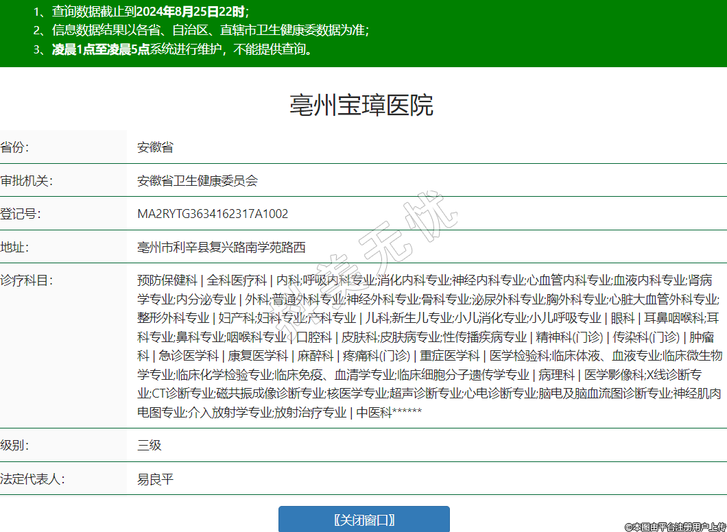 預(yù)防保健科 | 全科醫(yī)療科 | 內(nèi)科;呼吸內(nèi)科專業(yè);消化內(nèi)科專業(yè);神經(jīng)內(nèi)科專業(yè);心血管內(nèi)科專業(yè);血液內(nèi)科專業(yè);腎病學(xué)專業(yè);內(nèi)分泌專業(yè) | 外科;普通外科專業(yè);神經(jīng)外科專業(yè);骨科專業(yè);泌尿外科專業(yè);胸外科專業(yè);心臟大血管外科專業(yè);整形外科專業(yè) | 婦產(chǎn)科;婦科專業(yè);產(chǎn)科專業(yè) | 兒科;新生兒專業(yè);小兒消化專業(yè);小兒呼吸專業(yè) | 眼科 | 耳鼻咽喉科;耳科專業(yè);鼻科專業(yè);咽喉科專業(yè) | 口腔科 | 皮膚科;皮膚病專業(yè);性傳播疾病專業(yè) | 精神科(門診) | 傳染科(門診) | 腫瘤科 | 急診醫(yī)學(xué)科 | 康復(fù)醫(yī)學(xué)科 | 麻醉科 | 疼痛科(門診) | 重癥醫(yī)學(xué)科 | 醫(yī)學(xué)檢驗(yàn)科;臨床體液、血液專業(yè);臨床微生物學(xué)專業(yè);臨床化學(xué)檢驗(yàn)專業(yè);臨床免疫、血清學(xué)專業(yè);臨床細(xì)胞分子遺傳學(xué)專業(yè) | 病理科 | 醫(yī)學(xué)影像科;X線診斷專業(yè);CT診斷專業(yè);磁共振成像診斷專業(yè);核醫(yī)學(xué)專業(yè);超聲診斷專業(yè);心電診斷專業(yè);腦電及腦血流圖診斷專業(yè);神經(jīng)肌肉電圖專業(yè);介入放射學(xué)專業(yè);放射治療專業(yè) | 中醫(yī)科******