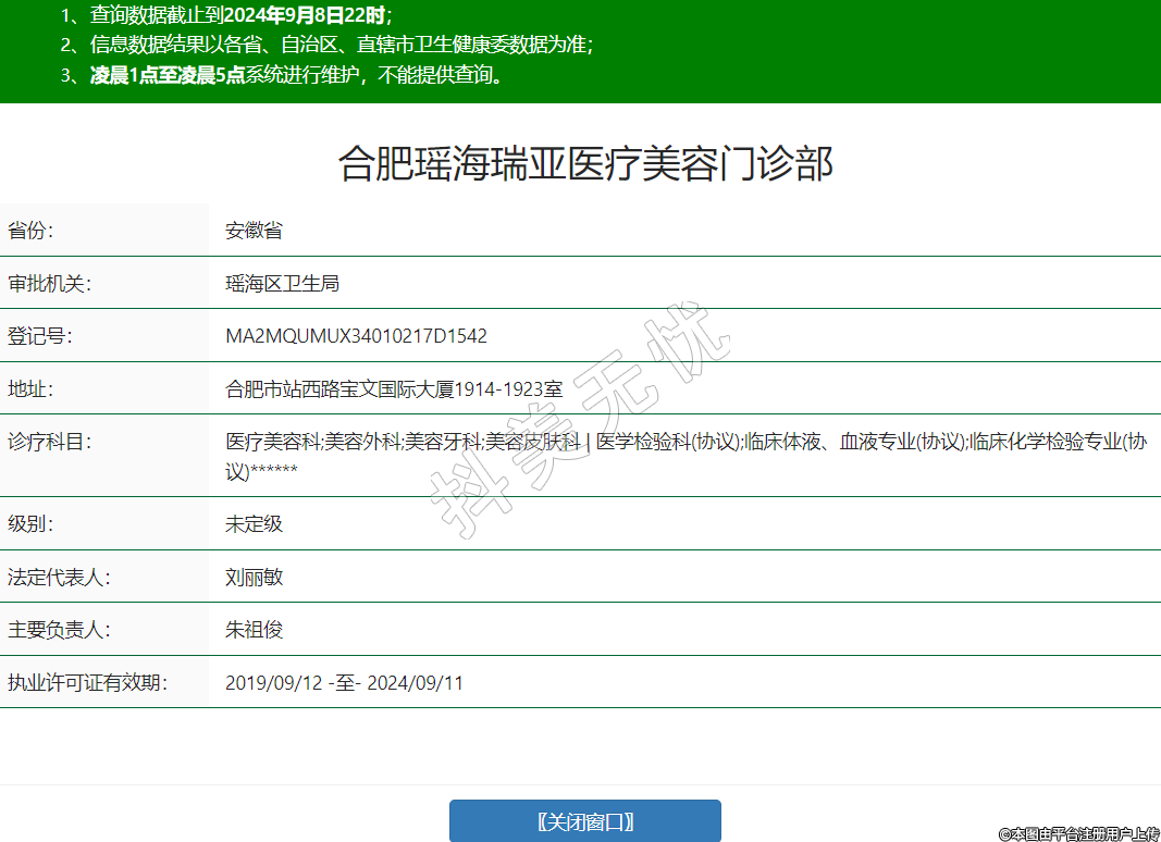 合肥瑤海瑞亞醫(yī)療美容門診部,診療科目:醫(yī)療美容科;美容外科;美容牙科;美容皮膚科 | 醫(yī)學檢驗科(協(xié)議);臨床體液、血液專業(yè)(協(xié)議);臨床化學檢驗專業(yè)(協(xié)議)******
