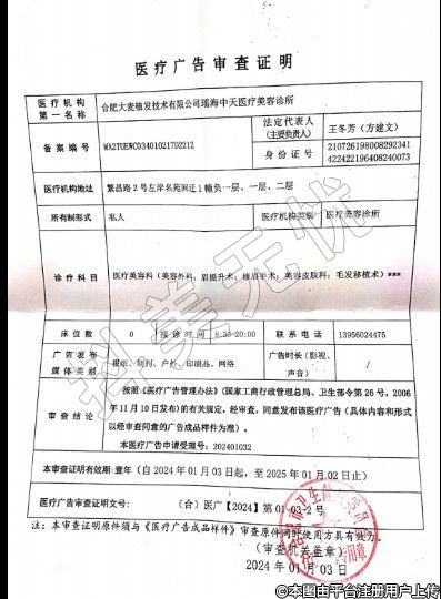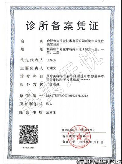 名稱:合肥大麥植發(fā)技術有限公司瑤海中天醫(yī)療美容診所
