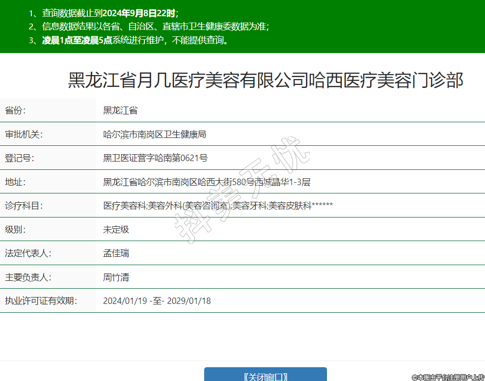 黑龍江省月幾醫(yī)療美容有限公司哈西醫(yī)療美容門診部
