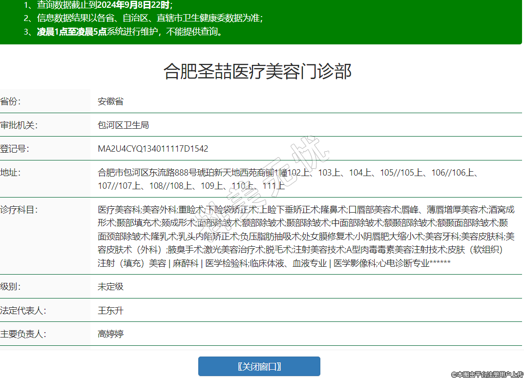 醫(yī)療美容科;美容外科;重瞼術(shù);下瞼袋矯正術(shù);上瞼下垂矯正術(shù);隆鼻術(shù);口唇部美容術(shù);唇峰、薄唇增厚美容術(shù);酒窩成形術(shù);顳部填充術(shù);頦成形術(shù);面部除皺術(shù);額部除皺術(shù);顳部除皺術(shù);中面部除皺術(shù);額顳部除皺術(shù);額顳面部除皺術(shù);顳面頸部除皺術(shù);隆乳術(shù);乳頭內(nèi)陷矯正術(shù);負(fù)壓脂肪抽吸術(shù);處女膜修復(fù)術(shù);小陰唇肥大縮小術(shù);美容牙科;美容皮膚科;美容皮膚術(shù)(外科);腋臭手術(shù);激光美容治療術(shù);脫毛術(shù);注射美容技術(shù);A型肉毒毒素美容注射技術(shù);皮膚(軟組織)注射(填充)美容 | 麻醉科 | 醫(yī)學(xué)檢驗科;臨床體液、血液專業(yè) | 醫(yī)學(xué)影像科;心電診斷專業(yè)******