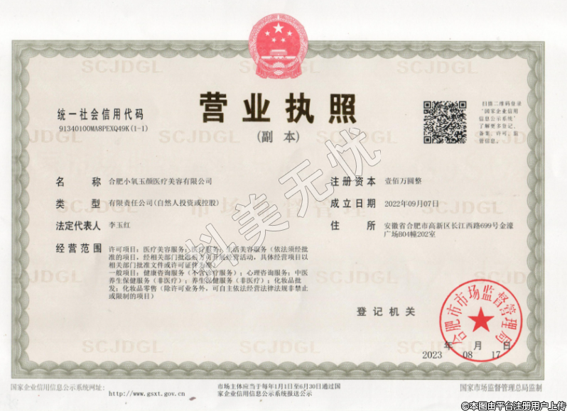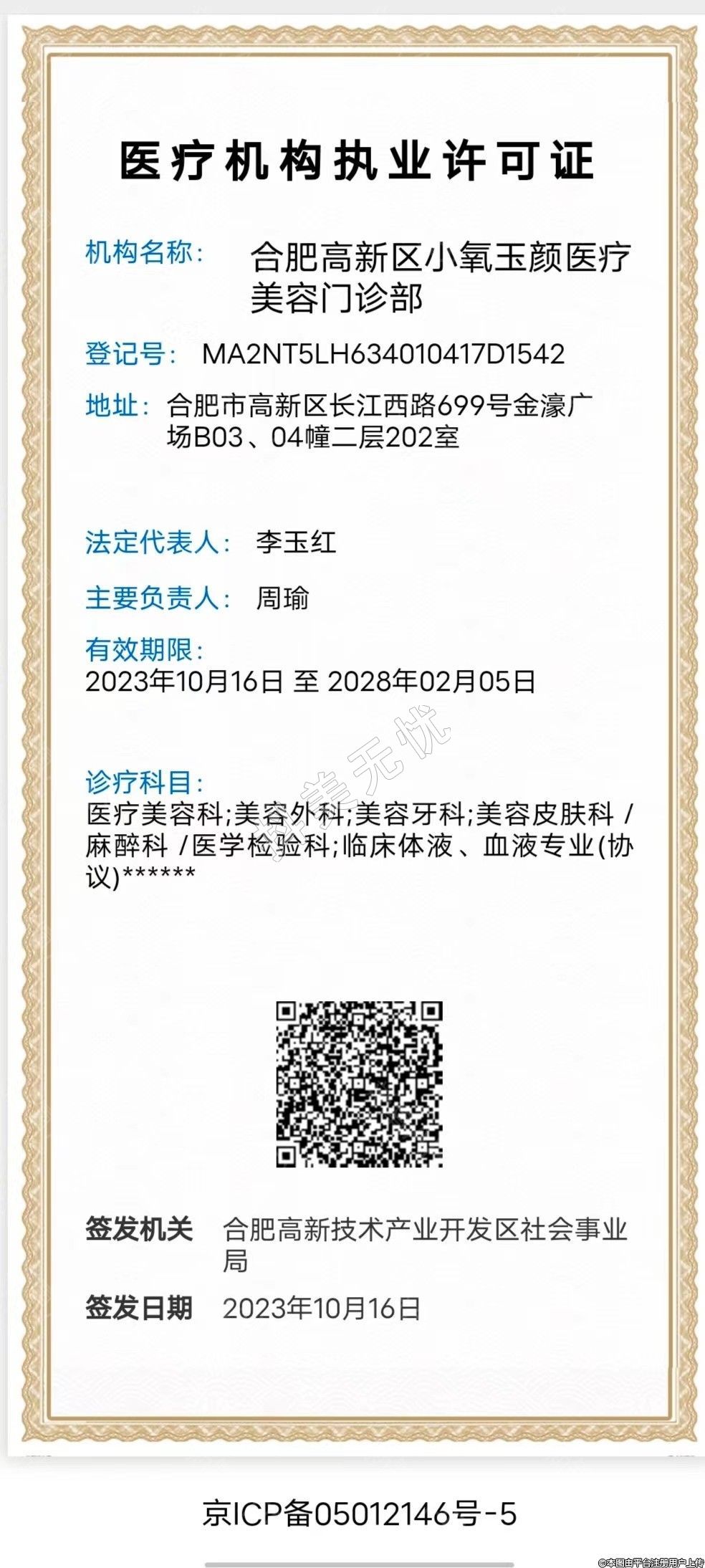 機構(gòu)名稱:合肥高新區(qū)小氧玉顏醫(yī)療美容門診部