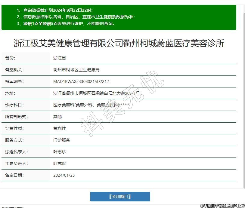 浙江極艾美健康管理有限公司衢州柯城蔚藍醫(yī)療美容診所