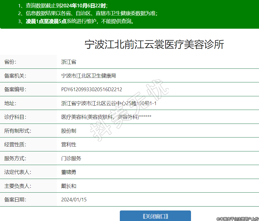 寧波江北前江云裳醫(yī)療美容診所,診療科目:醫(yī)療美容科(美容皮膚科,美容外科)******