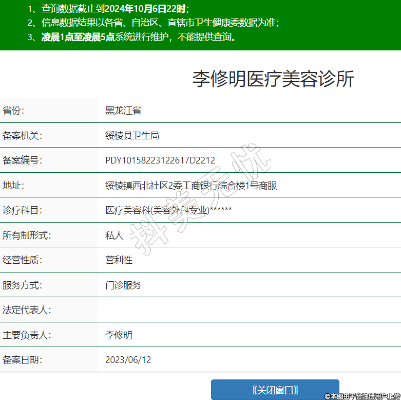 綏棱李修明醫(yī)療美容,診療科目:醫(yī)療美容科(美容外科專業(yè))******