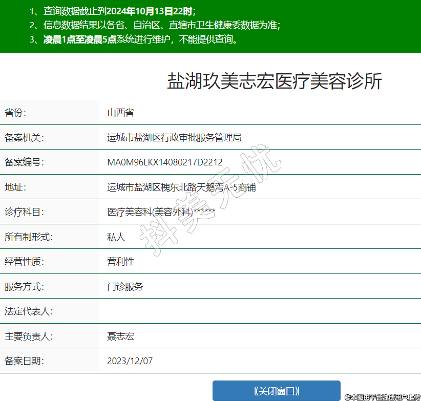 鹽湖玖美志宏醫(yī)療美容診所成立于2021-09-09,位于山西省運城市鹽湖區(qū)槐東北路天鵝灣A-5商鋪。