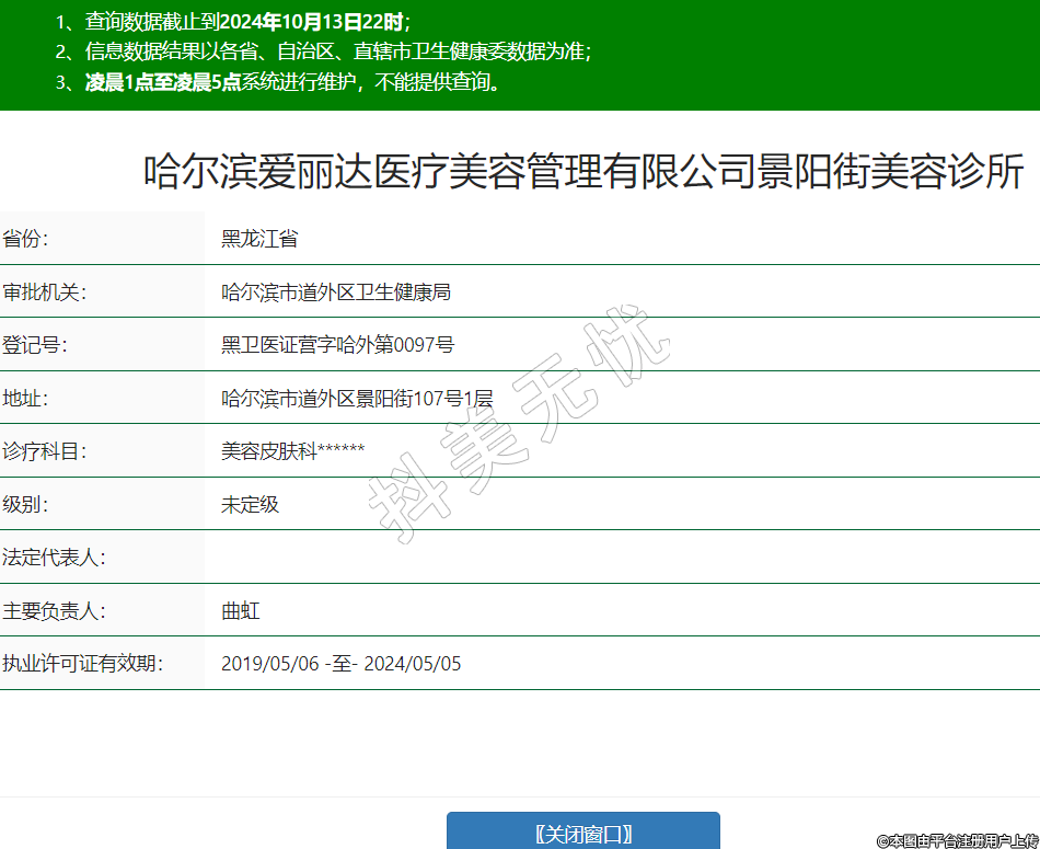 哈爾濱愛麗達醫(yī)療美容管理有限公司景陽街美容診所,診療科目:美容皮膚科******