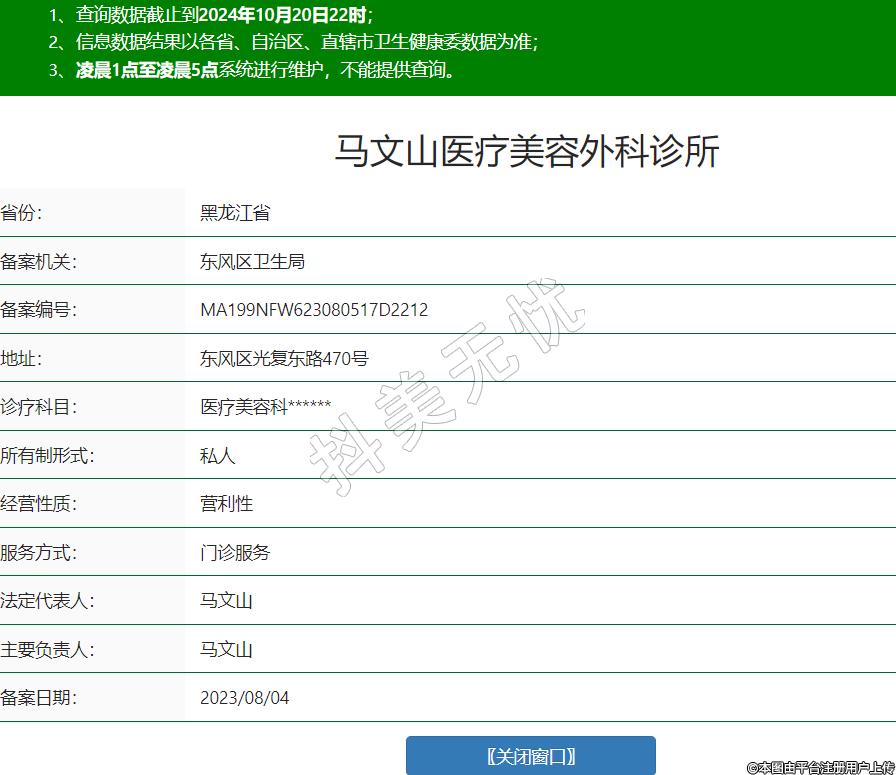 佳木斯馬文山醫(yī)療美容診所成立于1987年,統(tǒng)一社會信用代碼:92230805MA199NFW6M,坐落于佳木斯市東風(fēng)區(qū)曉云社區(qū)(陽光綠洲11棟),現(xiàn)診所面積為300平方米,前身為二甲級醫(yī)院整形美容科,在美容外科醫(yī)生馬文山院長的帶領(lǐng)下,現(xiàn)是佳木斯市頗具實力的整形美容機構(gòu),為各界愛美人士提供了完備的選擇。