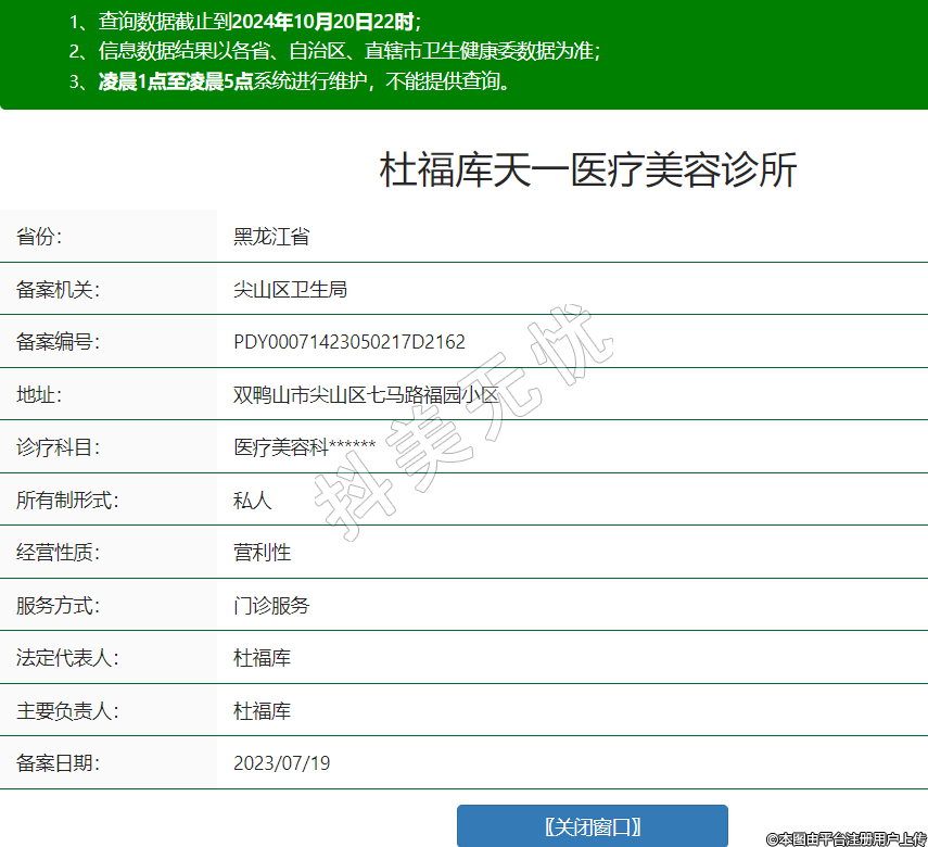 杜福庫天一醫(yī)療美容診所,診療科目:醫(yī)療美容科******