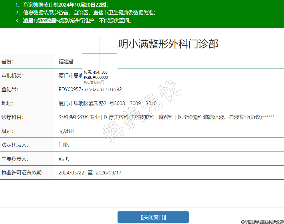廈門思明小滿整形外科門診部,診療科目:外科;整形外科專業(yè) | 醫(yī)療美容科;美容皮膚科 | 麻醉科 | 醫(yī)學(xué)檢驗科;臨床體液、血液專業(yè)(協(xié)議)******
