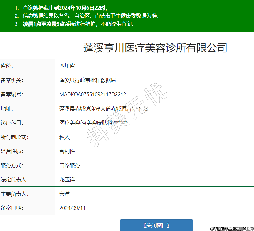 蓬溪亨川醫(yī)療美容診所有限公司,診療科目:醫(yī)療美容科(美容皮膚科)******