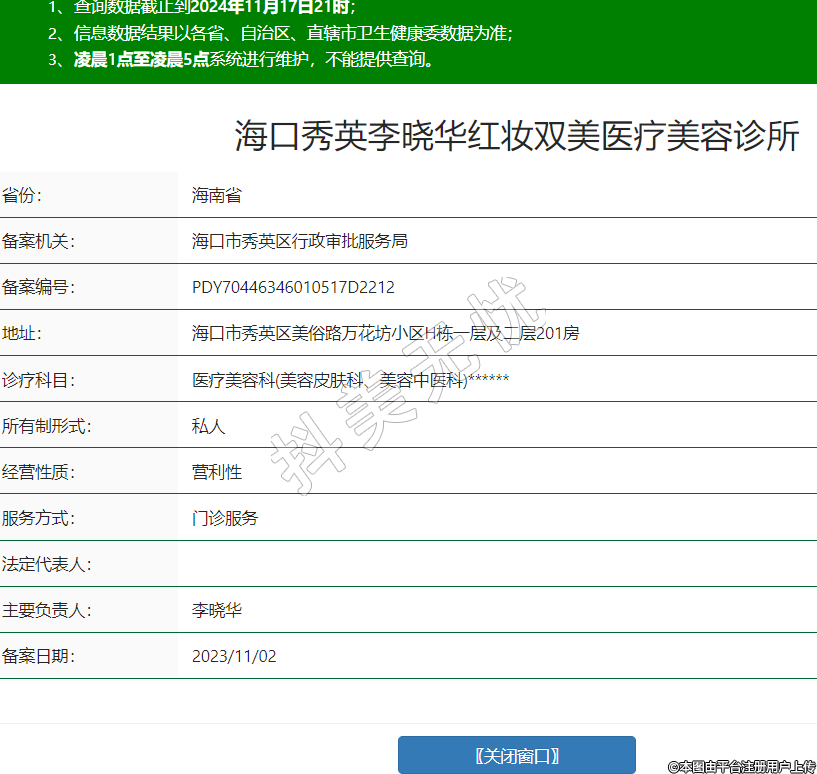 海口秀英李曉華紅妝雙美醫(yī)療美容診所,診療科目:醫(yī)療美容科(美容皮膚科、美容中醫(yī)科)******