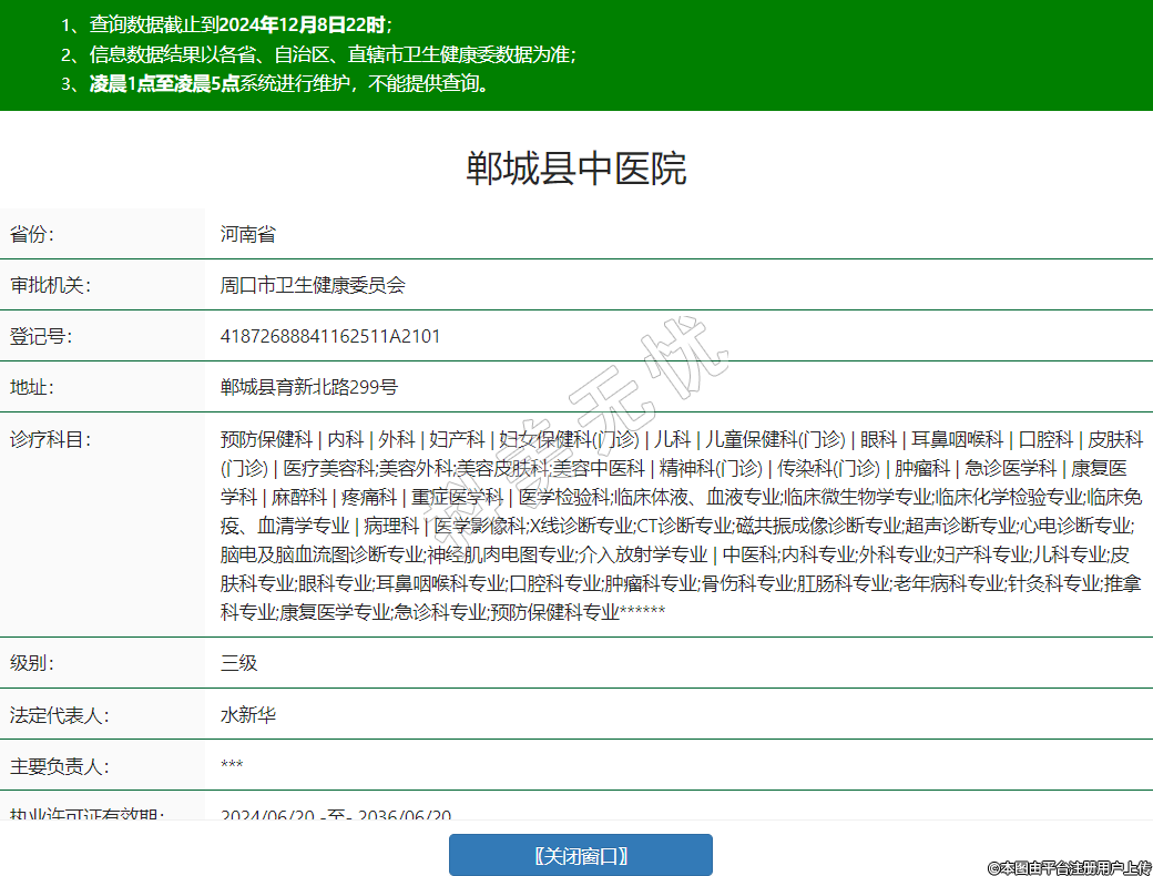 預(yù)防保健科 | 內(nèi)科 | 外科 | 婦產(chǎn)科 | 婦女保健科(門診) | 兒科 | 兒童保健科(門診) | 眼科 | 耳鼻咽喉科 | 口腔科 | 皮膚科(門診) | 醫(yī)療美容科;美容外科;美容皮膚科;美容中醫(yī)科 | 精神科(門診) | 傳染科(門診) | 腫瘤科 | 急診醫(yī)學(xué)科 | 康復(fù)醫(yī)學(xué)科 | 麻醉科 | 疼痛科 | 重癥醫(yī)學(xué)科 | 醫(yī)學(xué)檢驗(yàn)科;臨床體液、血液專業(yè);臨床微生物學(xué)專業(yè);臨床化學(xué)檢驗(yàn)專業(yè);臨床免疫、血清學(xué)專業(yè) | 病理科 | 醫(yī)學(xué)影像科;X線診斷專業(yè);CT診斷專業(yè);磁共振成像診斷專業(yè);超聲診斷專業(yè);心電診斷專業(yè);腦電及腦血流圖診斷專業(yè);神經(jīng)肌肉電圖專業(yè);介入放射學(xué)專業(yè) | 中醫(yī)科;內(nèi)科專業(yè);外科專業(yè);婦產(chǎn)科專業(yè);兒科專業(yè);皮膚科專業(yè);眼科專業(yè);耳鼻咽喉科專業(yè);口腔科專業(yè);腫瘤科專業(yè);骨傷科專業(yè);肛腸科專業(yè);老年病科專業(yè);針灸科專業(yè);推拿科專業(yè);康復(fù)醫(yī)學(xué)專業(yè);急診科專業(yè);預(yù)防保健科專業(yè)******