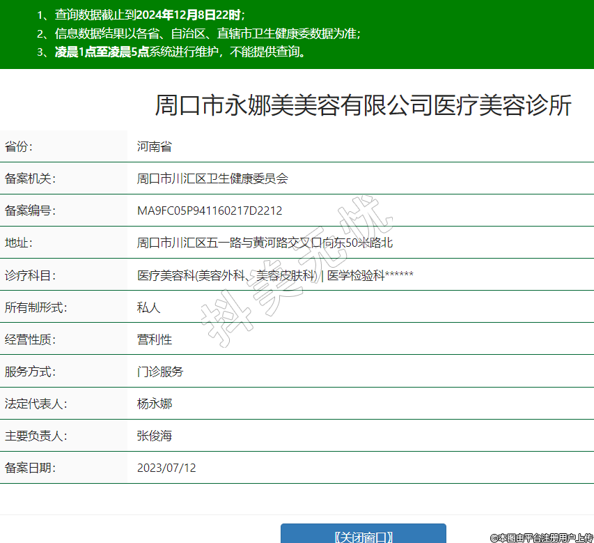 周口市永娜美美容有限公司醫(yī)療美容診所,診療科目:醫(yī)療美容科(美容外科、美容皮膚科) | 醫(yī)學(xué)檢驗科******