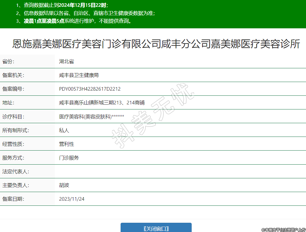 恩施嘉美娜醫(yī)療美容門診有限公司咸豐分公司嘉美娜醫(yī)療美容診所