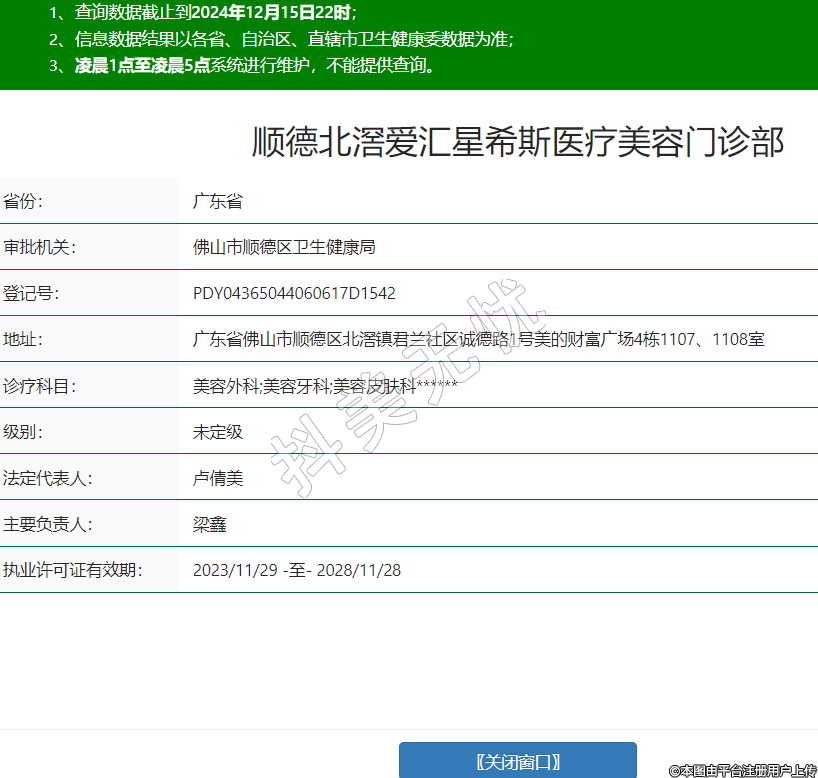 順德北滘愛匯星希斯醫(yī)療美容門診部,診療科目:美容外科;美容牙科;美容皮膚科******