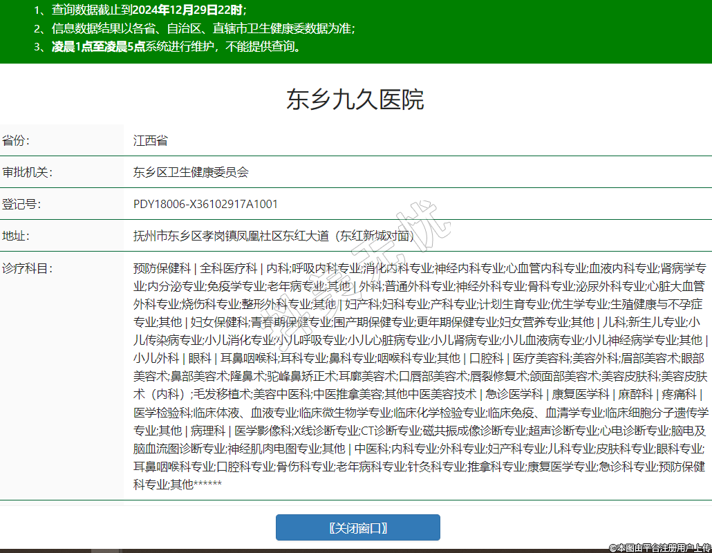 預(yù)防保健科 | 全科醫(yī)療科 | 內(nèi)科;呼吸內(nèi)科專業(yè);消化內(nèi)科專業(yè);神經(jīng)內(nèi)科專業(yè);心血管內(nèi)科專業(yè);血液內(nèi)科專業(yè);腎病學(xué)專業(yè);內(nèi)分泌專業(yè);免疫學(xué)專業(yè);老年病專業(yè);其他 | 外科;普通外科專業(yè);神經(jīng)外科專業(yè);骨科專業(yè);泌尿外科專業(yè);心臟大血管外科專業(yè);燒傷科專業(yè);整形外科專業(yè);其他 | 婦產(chǎn)科;婦科專業(yè);產(chǎn)科專業(yè);計劃生育專業(yè);優(yōu)生學(xué)專業(yè);生殖健康與不孕癥專業(yè);其他 | 婦女保健科;青春期保健專業(yè);圍產(chǎn)期保健專業(yè);更年期保健專業(yè);婦女營養(yǎng)專業(yè);其他 | 兒科;新生兒專業(yè);小兒傳染病專業(yè);小兒消化專業(yè);小兒呼吸專業(yè);小兒心臟病專業(yè);小兒腎病專業(yè);小兒血液病專業(yè);小兒神經(jīng)病學(xué)專業(yè);其他 | 小兒外科 | 眼科 | 耳鼻咽喉科;耳科專業(yè);鼻科專業(yè);咽喉科專業(yè);其他 | 口腔科 | 醫(yī)療美容科;美容外科;眉部美容術(shù);眼部美容術(shù);鼻部美容術(shù);隆鼻術(shù);駝峰鼻矯正術(shù);耳廓美容術(shù);口唇部美容術(shù);唇裂修復(fù)術(shù);頜面部美容術(shù);美容皮膚科;美容皮膚術(shù)(內(nèi)科);毛發(fā)移植術(shù);美容中醫(yī)科;中醫(yī)推拿美容;其他中醫(yī)美容技術(shù) | 急診醫(yī)學(xué)科 | 康復(fù)醫(yī)學(xué)科 | 麻醉科 | 疼痛科 | 醫(yī)學(xué)檢驗科;臨床體液、血液專業(yè);臨床微生物學(xué)專業(yè);臨床化學(xué)檢驗專業(yè);臨床免疫、血清學(xué)專業(yè);臨床細胞分子遺傳學(xué)專業(yè);其他 | 病理科 | 醫(yī)學(xué)影像科;X線診斷專業(yè);CT診斷專業(yè);磁共振成像診斷專業(yè);超聲診斷專業(yè);心電診斷專業(yè);腦電及腦血流圖診斷專業(yè);神經(jīng)肌肉電圖專業(yè);其他 | 中醫(yī)科;內(nèi)科專業(yè);外科專業(yè);婦產(chǎn)科專業(yè);兒科專業(yè);皮膚科專業(yè);眼科專業(yè);耳鼻咽喉科專業(yè);口腔科專業(yè);骨傷科專業(yè);老年病科專業(yè);針灸科專業(yè);推拿科專業(yè);康復(fù)醫(yī)學(xué)專業(yè);急診科專業(yè);預(yù)防保健科專業(yè);其他******