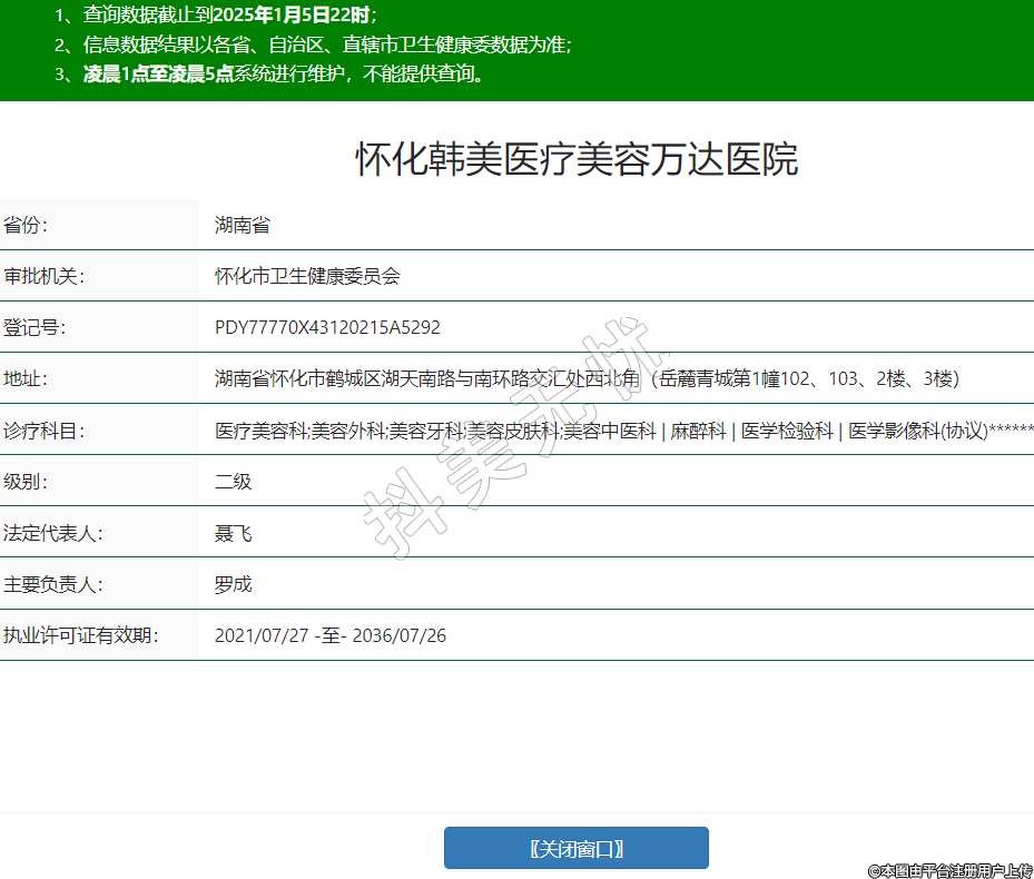 懷化韓美醫(yī)療美容(萬達),診療科目:醫(yī)療美容科;美容外科;美容牙科;美容皮膚科;美容中醫(yī)科 | 麻醉科 | 醫(yī)學檢驗科 | 醫(yī)學影像科(協議)******
