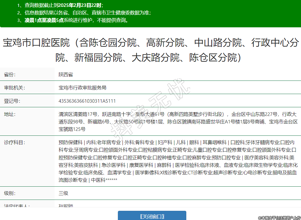 寶雞市口腔醫(yī)院(含陳倉園分院、高新分院、中山路分院、行政中心分院、新福園分院、大慶路分院、陳倉區(qū)分院)