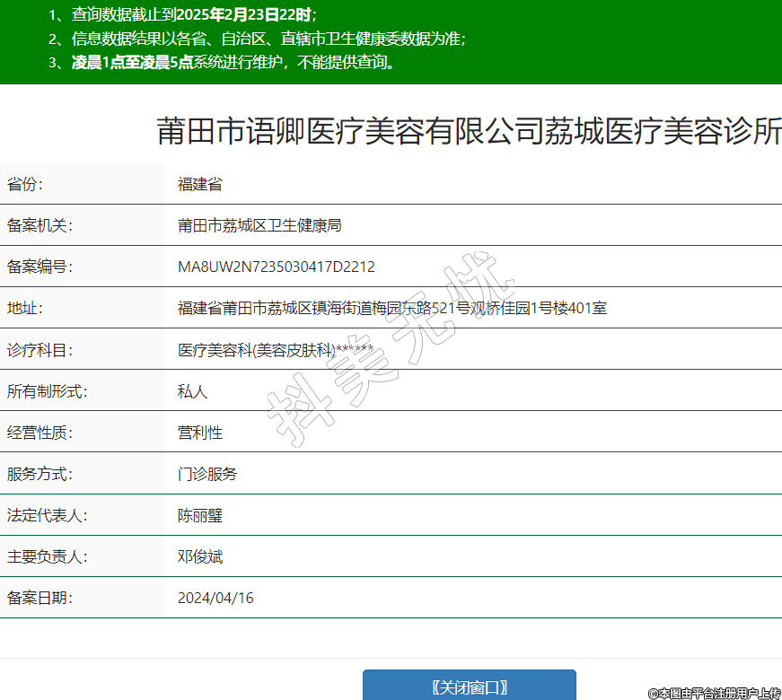 莆田市語卿醫(yī)療美容有限公司荔城醫(yī)療美容診所,診療科目:醫(yī)療美容科(美容皮膚科)******
