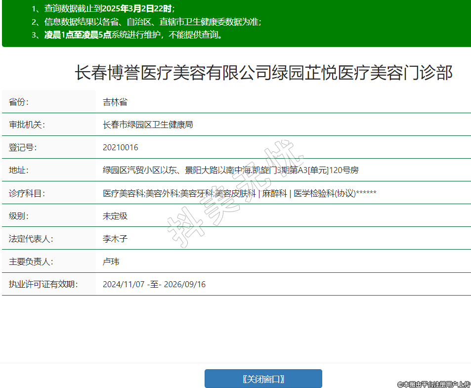 長(zhǎng)春博譽(yù)醫(yī)療美容有限公司綠園芷悅醫(yī)療美容門診部
