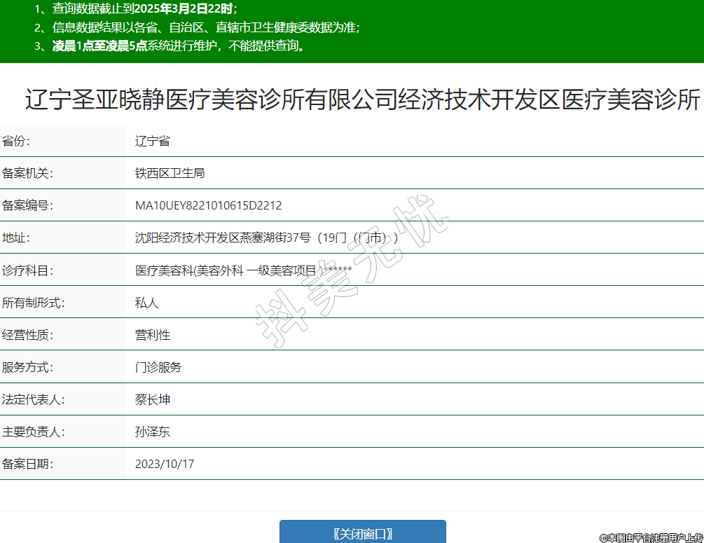 遼寧圣亞曉靜醫(yī)療美容診所有限公司經(jīng)濟(jì)技術(shù)開(kāi)發(fā)區(qū)醫(yī)療美容診所