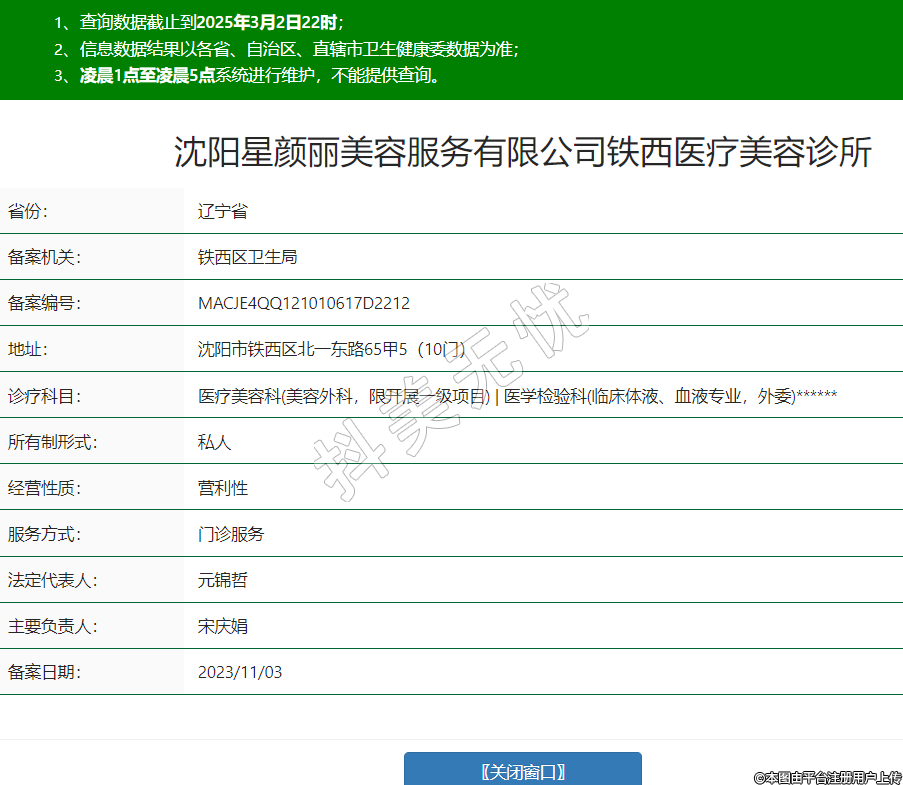 沈陽星顏麗美容服務(wù)有限公司鐵西醫(yī)療美容診所,診療科目:醫(yī)療美容科(美容外科,限開展一級項目) | 醫(yī)學(xué)檢驗科(臨床體液、血液專業(yè),外委)******
