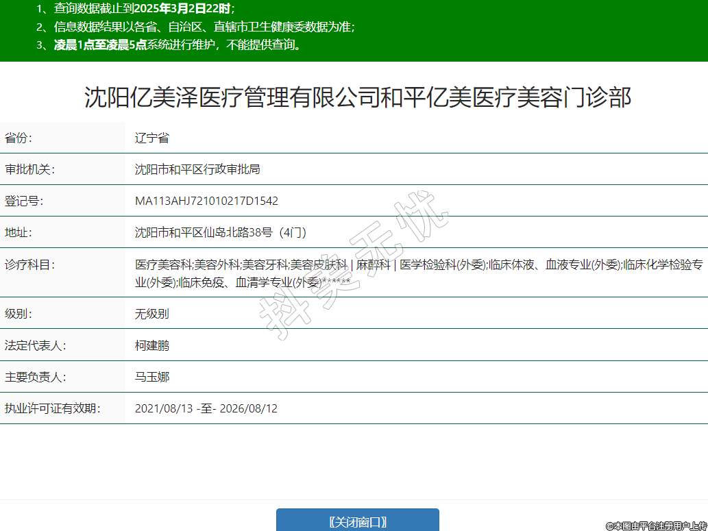 沈陽(yáng)億美澤醫(yī)療管理有限公司和平億美醫(yī)療美容門(mén)診部