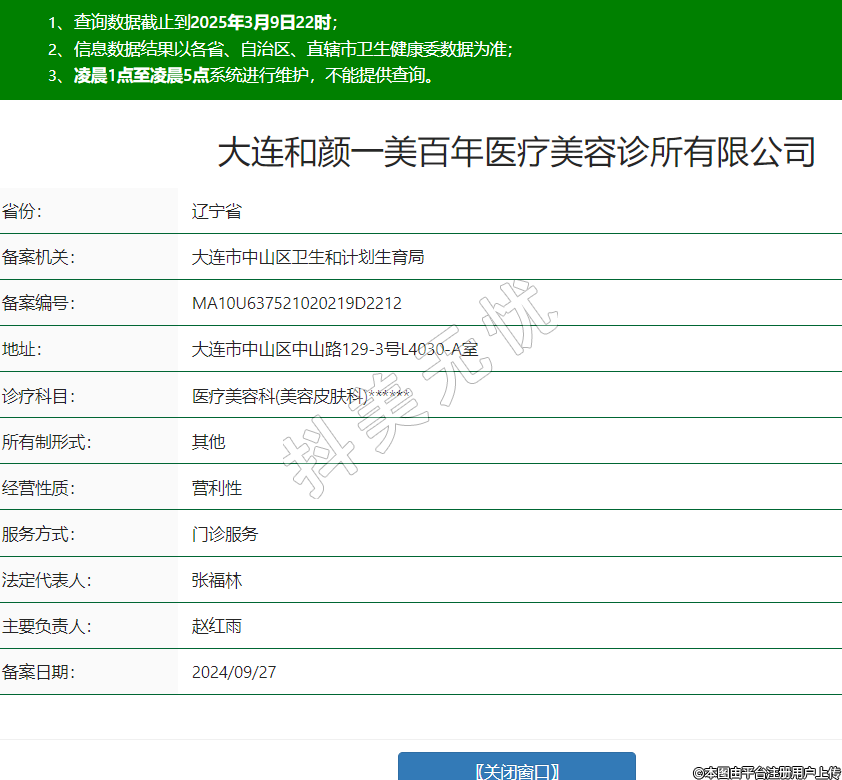 大連和顏一美百年醫(yī)療美容診所有限公司,診療科目:醫(yī)療美容科(美容皮膚科)******
