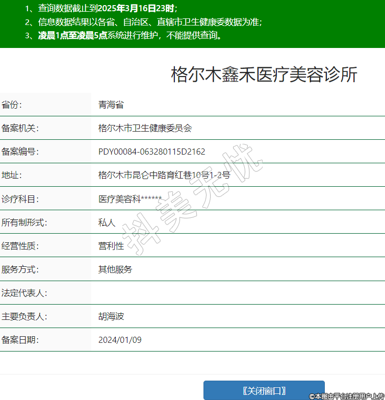格爾木鑫禾醫(yī)療美容診所,診療科目:醫(yī)療美容科******
