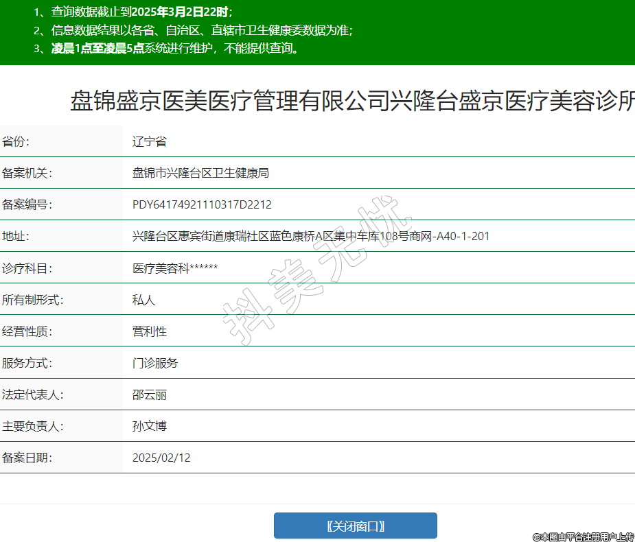 盤錦盛京醫(yī)美醫(yī)療管理有限公司興隆臺盛京醫(yī)療美容診所,診療科目:醫(yī)療美容科******