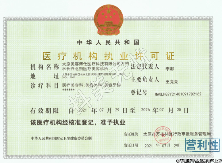 機(jī)構(gòu)名稱:太原美客博仕醫(yī)療科技有限公司萬(wàn)柏林長(zhǎng)興北街醫(yī)療美容診所