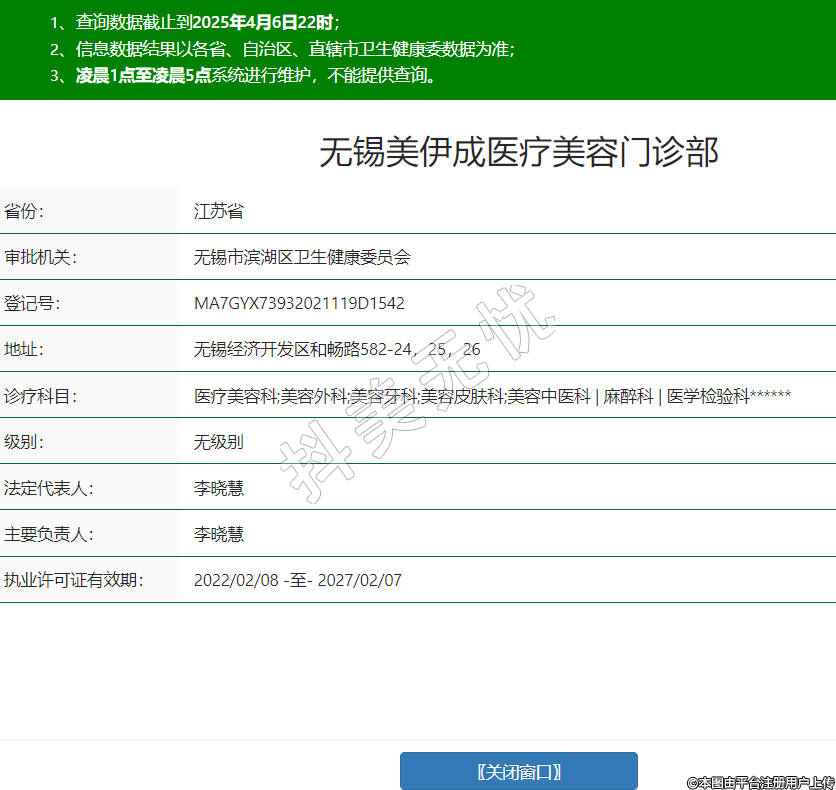 無錫美伊成醫(yī)療美容,診療科目:醫(yī)療美容科;美容外科;美容牙科;美容皮膚科;美容中醫(yī)科 | 麻醉科 | 醫(yī)學(xué)檢驗科******