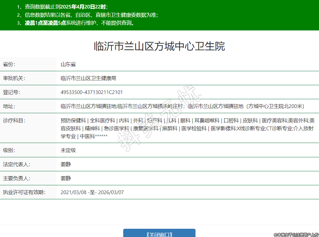 臨沂市蘭山區(qū)方城鎮(zhèn)駐地;臨沂市蘭山區(qū)方城鎮(zhèn)朱嶺莊村;臨沂市蘭山區(qū)方城鎮(zhèn)駐地(方城中心衛(wèi)生院北200米)