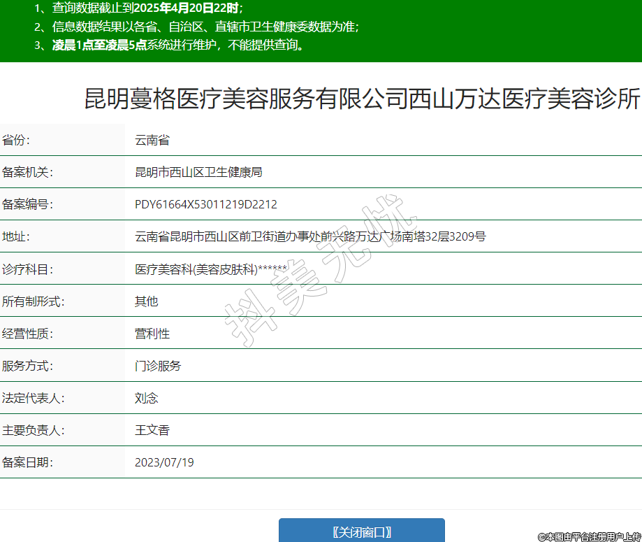 昆明蔓格醫(yī)療美容服務(wù)有限公司西山萬(wàn)達(dá)醫(yī)療美容診所