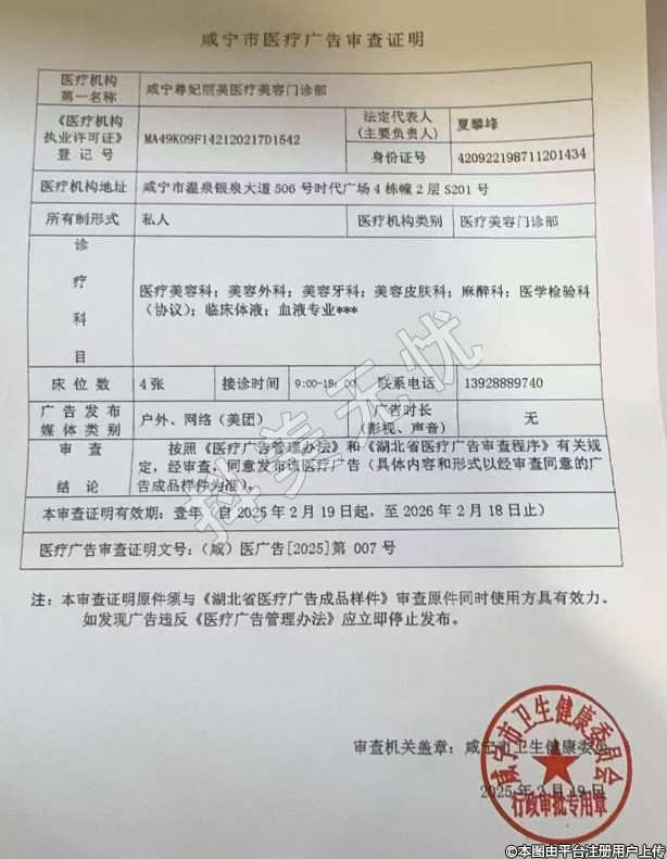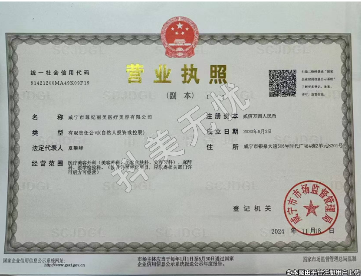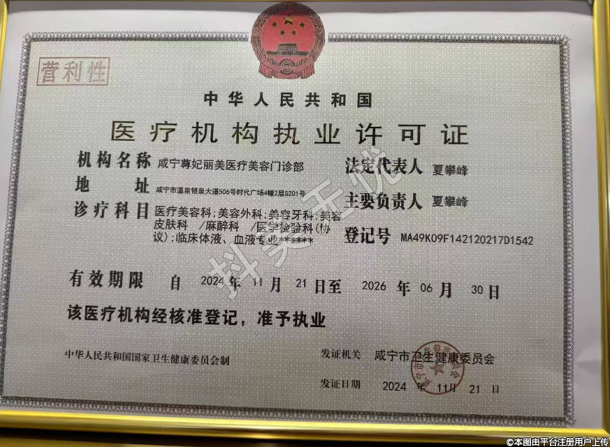 機(jī)構(gòu)稱(chēng):咸寧尊妃麗美醫(yī)療美容門(mén)診部