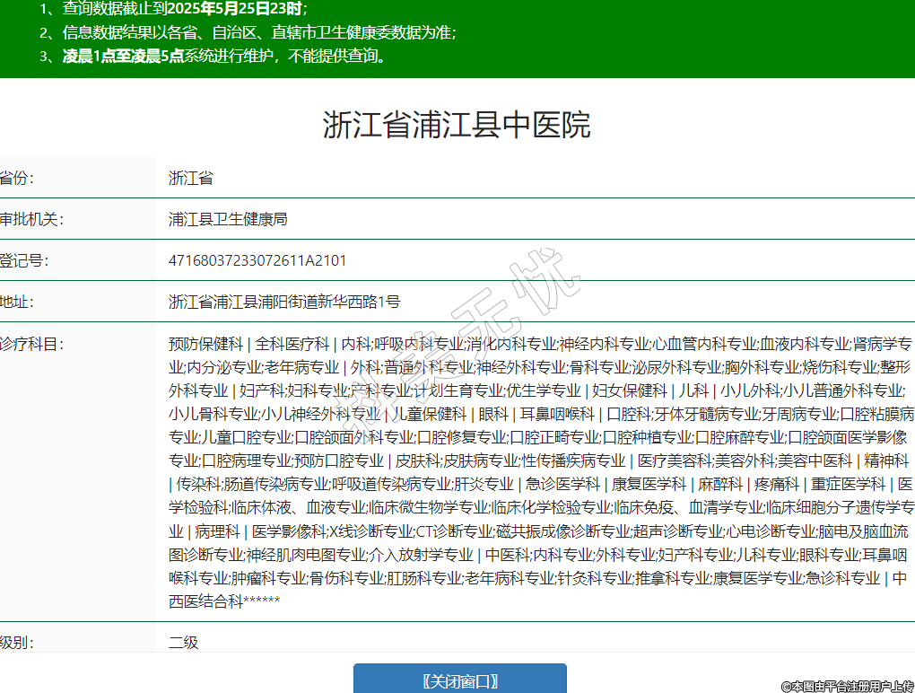 省份:浙江省審批機關(guān):浦江縣衛(wèi)生健康局登記號:47168037233072611A2101地址:浙江省浦江縣浦陽街道新華西路1號診療科目:預(yù)防保健科 | 全科醫(yī)療科 | 內(nèi)科;呼吸內(nèi)科專業(yè);消化內(nèi)科專業(yè);神經(jīng)內(nèi)科專業(yè);心血管內(nèi)科專業(yè);血液內(nèi)科專業(yè);腎病學(xué)專業(yè);內(nèi)分泌專業(yè);老年病專業(yè) | 外科;普通外科專業(yè);神經(jīng)外科專業(yè);骨科專業(yè);泌尿外科專業(yè);胸外科專業(yè);燒傷科專業(yè);整形外科專業(yè) | 婦產(chǎn)科;婦科專業(yè);產(chǎn)科專業(yè);計劃生育專業(yè);優(yōu)生學(xué)專業(yè) | 婦女保健科 | 兒科 | 小兒外科;小兒普通外科專業(yè);小兒骨科專業(yè);小兒神經(jīng)外科專業(yè) | 兒童保健科 | 眼科 | 耳鼻咽喉科 | 口腔科;牙體牙髓病專業(yè);牙周病專業(yè);口腔粘膜病專業(yè);兒童口腔專業(yè);口腔頜面外科專業(yè);口腔修復(fù)專業(yè);口腔正畸專業(yè);口腔種植專業(yè);口腔麻醉專業(yè);口腔頜面醫(yī)學(xué)影像專業(yè);口腔病理專業(yè);預(yù)防口腔專業(yè) | 皮膚科;皮膚病專業(yè);性傳播疾病專業(yè) | 醫(yī)療美容科;美容外科;美容中醫(yī)科 | 精神科 | 傳染科;腸道傳染病專業(yè);呼吸道傳染病專業(yè);肝炎專業(yè) | 急診醫(yī)學(xué)科 | 康復(fù)醫(yī)學(xué)科 | 麻醉科 | 疼痛科 | 重癥醫(yī)學(xué)科 | 醫(yī)學(xué)檢驗科;臨床體液、血液專業(yè);臨床微生物學(xué)專業(yè);臨床化學(xué)檢驗專業(yè);臨床免疫、血清學(xué)專業(yè);臨床細胞分子遺傳學(xué)專業(yè) | 病理科 | 醫(yī)學(xué)影像科;X線診斷專業(yè);CT診斷專業(yè);磁共振成像診斷專業(yè);超聲診斷專業(yè);心電診斷專業(yè);腦電及腦血流圖診斷專業(yè);神經(jīng)肌肉電圖專業(yè);介入放射學(xué)專業(yè) | 中醫(yī)科;內(nèi)科專業(yè);外科專業(yè);婦產(chǎn)科專業(yè);兒科專業(yè);眼科專業(yè);耳鼻咽喉科專業(yè);腫瘤科專業(yè);骨傷科專業(yè);肛腸科專業(yè);老年病科專業(yè);針灸科專業(yè);推拿科專業(yè);康復(fù)醫(yī)學(xué)專業(yè);急診科專業(yè) | 中西醫(yī)結(jié)合科******級別:二級法定代表人:潘文雙主要負責(zé)人:潘文雙執(zhí)業(yè)許可證有效期:2024/04/29 -至- 2029/04/28 -