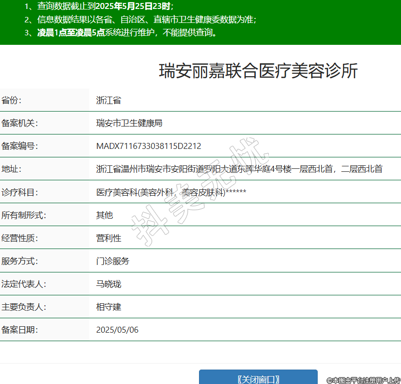 省份:浙江省備案機(jī)關(guān):瑞安市衛(wèi)生健康局備案編號(hào):MADX7116733038115D2212地址:浙江省溫州市瑞安市安陽(yáng)街道羅陽(yáng)大道東暉華庭4號(hào)樓一層西北首,二層西北首診療科目:醫(yī)療美容科(美容外科,美容皮膚科)******所有制形式:其他經(jīng)營(yíng)性質(zhì):營(yíng)利性服務(wù)方式:門診服務(wù)法定代表人:馬曉瓏主要負(fù)責(zé)人:相守建備案日期:2025/05/06 -