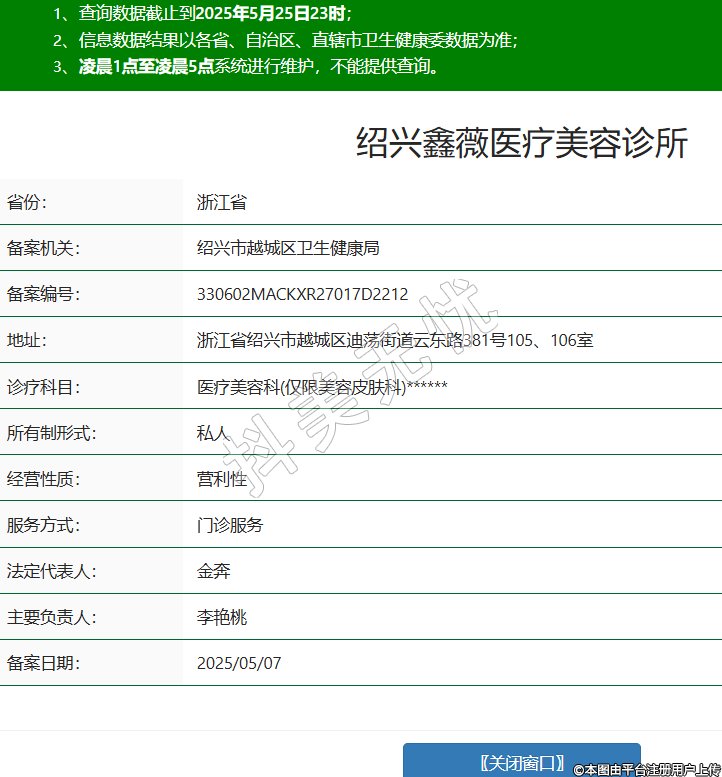 省份:浙江省備案機(jī)關(guān):紹興市越城區(qū)衛(wèi)生健康局備案編號(hào):330602MACKXR27017D2212地址:浙江省紹興市越城區(qū)迪蕩街道云東路381號(hào)105、106室診療科目:醫(yī)療美容科(僅限美容皮膚科)******所有制形式:私人經(jīng)營性質(zhì):營利性服務(wù)方式:門診服務(wù)法定代表人:金奔主要負(fù)責(zé)人:李艷桃備案日期:2025/05/07 -