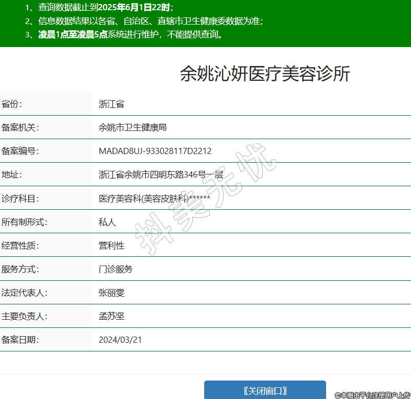 省份:浙江省備案機關(guān):余姚市衛(wèi)生健康局備案編號:MADAD8UJ-933028117D2212地址:浙江省余姚市四明東路346號一層診療科目:醫(yī)療美容科(美容皮膚科)******所有制形式:私人經(jīng)營性質(zhì):營利性服務(wù)方式:門診服務(wù)法定代表人:張麗雯主要負責人:孟蘇堅備案日期:2024/03/21 -