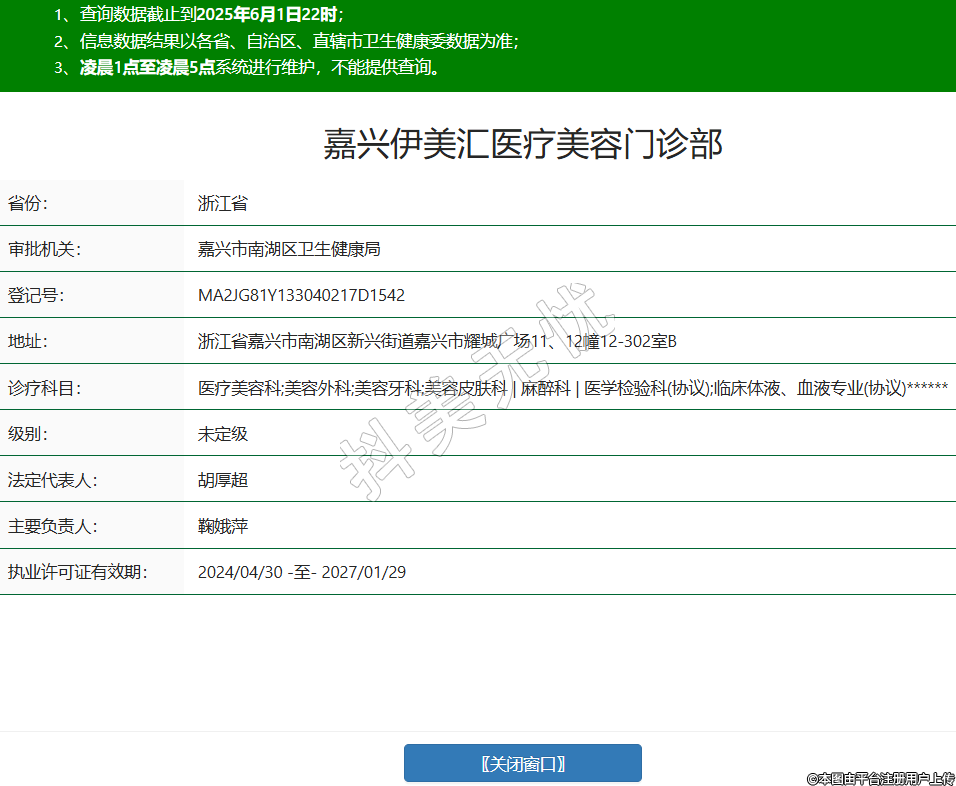 省份:浙江省審批機關(guān):嘉興市南湖區(qū)衛(wèi)生健康局登記號:MA2JG81Y133040217D1542地址:浙江省嘉興市南湖區(qū)新興街道嘉興市耀城廣場11、12幢12-302室B診療科目:醫(yī)療美容科;美容外科;美容牙科;美容皮膚科 | 麻醉科 | 醫(yī)學檢驗科(協(xié)議);臨床體液、血液專業(yè)(協(xié)議)******級別:未定級法定代表人:胡厚超主要負責人:鞠娥萍執(zhí)業(yè)許可證有效期:2024/04/30 -至- 2027/01/29 -