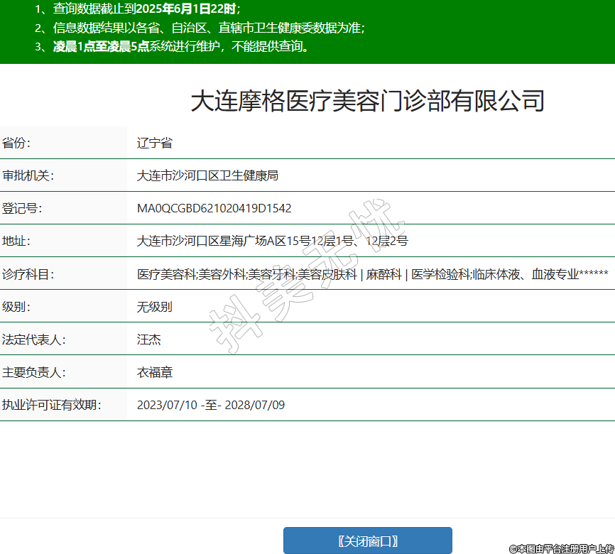 省份:遼寧省審批機關(guān):大連市沙河口區(qū)衛(wèi)生健康局登記號:MA0QCGBD621020419D1542地址:大連市沙河口區(qū)星海廣場A區(qū)15號12層1號、12層2號診療科目:醫(yī)療美容科;美容外科;美容牙科;美容皮膚科 | 麻醉科 | 醫(yī)學(xué)檢驗科;臨床體液、血液專業(yè)******級別:無級別法定代表人:汪杰主要負責(zé)人:衣福章執(zhí)業(yè)許可證有效期:2023/07/10 -至- 2028/07/09 -