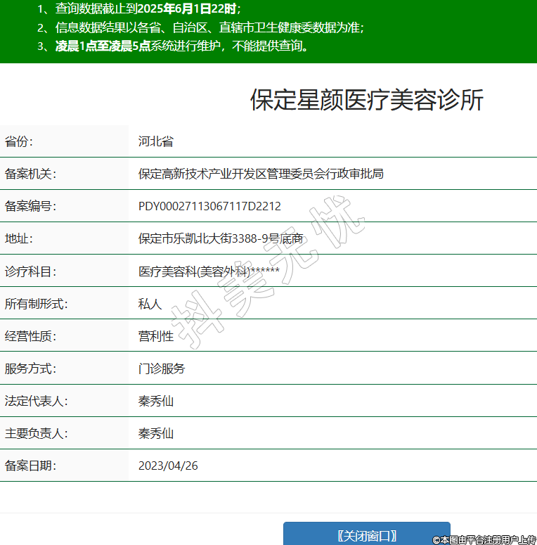省份:河北省備案機(jī)關(guān):保定高新技術(shù)產(chǎn)業(yè)開(kāi)發(fā)區(qū)管理委員會(huì)行政審批局備案編號(hào):PDY00027113067117D2212地址:保定市樂(lè)凱北大街3388-9號(hào)底商診療科目:醫(yī)療美容科(美容外科)******所有制形式:私人經(jīng)營(yíng)性質(zhì):營(yíng)利性服務(wù)方式:門(mén)診服務(wù)法定代表人:秦秀仙主要負(fù)責(zé)人:秦秀仙備案日期:2023/04/26 -