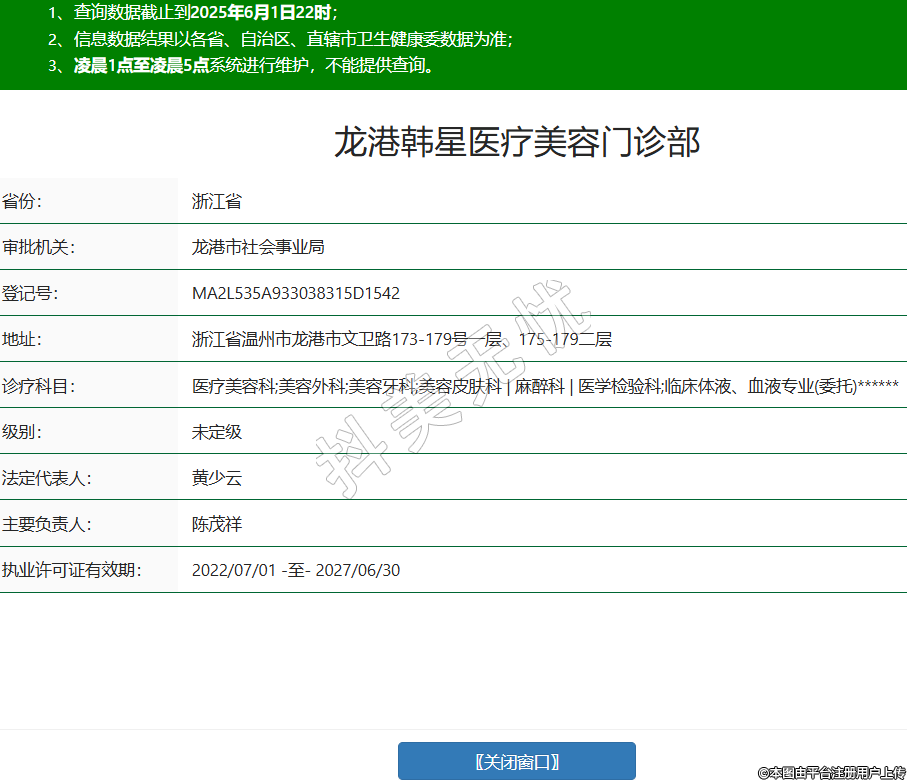 龍港韓星醫(yī)療美容,診療科目:醫(yī)療美容科;美容外科;美容牙科;美容皮膚科 | 麻醉科 | 醫(yī)學檢驗科;臨床體液、血液專業(yè)(委托)******