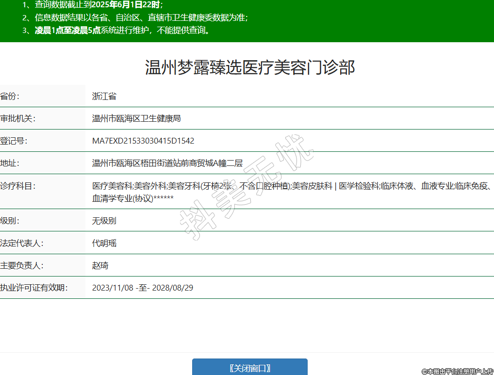 省份:浙江省審批機(jī)關(guān):溫州市甌海區(qū)衛(wèi)生健康局登記號(hào):MA7EXD21533030415D1542地址:溫州市甌海區(qū)梧田街道站前商貿(mào)城A幢二層診療科目:醫(yī)療美容科;美容外科;美容牙科(牙椅2張、不含口腔種植);美容皮膚科 | 醫(yī)學(xué)檢驗(yàn)科;臨床體液、血液專業(yè);臨床免疫、血清學(xué)專業(yè)(協(xié)議)******級(jí)別:無級(jí)別法定代表人:代明瑤主要負(fù)責(zé)人:趙琦執(zhí)業(yè)許可證有效期:2023/11/08 -至- 2028/08/29 -