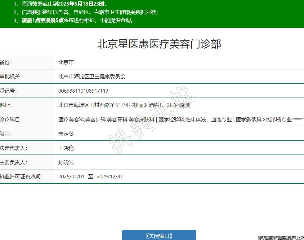 北京星醫(yī)惠醫(yī)療美容門診部,診療科目:醫(yī)療美容科;美容外科;美容牙科;美容皮膚科 | 醫(yī)學(xué)檢驗(yàn)科;臨床體液、血液專業(yè) | 醫(yī)學(xué)影像科;X線診斷專業(yè)******