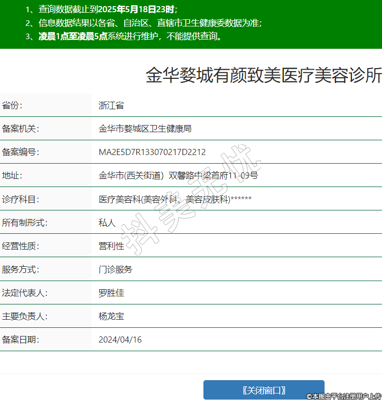 省份:浙江省備案機(jī)關(guān):金華市婺城區(qū)衛(wèi)生健康局備案編號:MA2E5D7R133070217D2212地址:金華市(西關(guān)街道)雙馨路中梁首府11-09號診療科目:醫(yī)療美容科(美容外科、美容皮膚科)******所有制形式:私人經(jīng)營性質(zhì):營利性服務(wù)方式:門診服務(wù)法定代表人:羅勝佳主要負(fù)責(zé)人:楊龍寶備案日期:2024/04/16 -