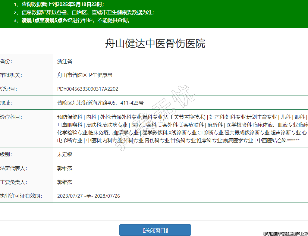 省份:浙江省審批機關(guān):舟山市普陀區(qū)衛(wèi)生健康局登記號:PDY00456333090317A2202地址:普陀區(qū)東港街道海蓮路405、411-423號診療科目:預(yù)防保健科 | 內(nèi)科 | 外科;普通外科專業(yè);骨科專業(yè)(人工關(guān)節(jié)置換技術(shù)) | 婦產(chǎn)科;婦科專業(yè);計劃生育專業(yè) | 兒科 | 眼科 | 耳鼻咽喉科 | 皮膚科;皮膚病專業(yè) | 醫(yī)療美容科;美容外科;美容皮膚科 | 麻醉科 | 醫(yī)學檢驗科;臨床體液、血液專業(yè);臨床化學檢驗專業(yè);臨床免疫、血清學專業(yè) | 醫(yī)學影像科;X線診斷專業(yè);CT診斷專業(yè);磁共振成像診斷專業(yè);超聲診斷專業(yè);心電診斷專業(yè) | 中醫(yī)科;內(nèi)科專業(yè);外科專業(yè);骨傷科專業(yè);針灸科專業(yè);推拿科專業(yè);康復(fù)醫(yī)學專業(yè) | 中西醫(yī)結(jié)合科******級別:未定級法定代表人:郭維杰主要負責人:郭維杰執(zhí)業(yè)許可證有效期:2023/07/27 -至- 2028/07/26 -