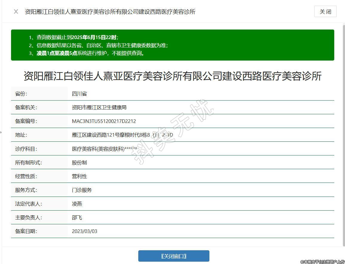 資陽雁江白領(lǐng)佳人熹亞醫(yī)療美容診所有限公司建設(shè)西路醫(yī)療美容診所