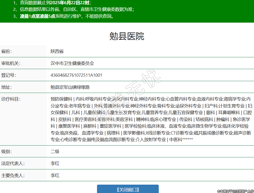 省份:陜西省審批機(jī)關(guān):漢中市衛(wèi)生健康委員會(huì)登記號(hào):43604682761072511A1001地址:勉縣定軍山鎮(zhèn)綠緣路診療科目:預(yù)防保健科 | 內(nèi)科;呼吸內(nèi)科專業(yè);消化內(nèi)科專業(yè);神經(jīng)內(nèi)科專業(yè);心血管內(nèi)科專業(yè);血液內(nèi)科專業(yè);腎病學(xué)專業(yè);內(nèi)分泌專業(yè);老年病專業(yè) | 外科;普通外科專業(yè);神經(jīng)外科專業(yè);骨科專業(yè);泌尿外科專業(yè) | 婦產(chǎn)科;計(jì)劃生育專業(yè) | 婦女保健科 | 兒科 | 兒童保健科;兒童生長發(fā)育專業(yè);兒童營養(yǎng)專業(yè);兒童五官保健專業(yè) | 眼科 | 耳鼻咽喉科 | 口腔科 | 皮膚科 | 醫(yī)療美容科;美容外科;美容牙科 | 精神科;臨床心理專業(yè) | 傳染科 | 結(jié)核病科 | 腫瘤科 | 急診醫(yī)學(xué)科 | 康復(fù)醫(yī)學(xué)科 | 麻醉科 | 重癥醫(yī)學(xué)科 | 醫(yī)學(xué)檢驗(yàn)科;臨床體液、血液專業(yè);臨床微生物學(xué)專業(yè);臨床化學(xué)檢驗(yàn)專業(yè);臨床免疫、血清學(xué)專業(yè) | 病理科 | 醫(yī)學(xué)影像科;X線診斷專業(yè);CT診斷專業(yè);磁共振成像診斷專業(yè);超聲診斷專業(yè);心電診斷專業(yè);腦電及腦血流圖診斷專業(yè);介入放射學(xué)專業(yè) | 中醫(yī)科******級(jí)別:二級(jí)法定代表人:李紅主要負(fù)責(zé)人:李紅執(zhí)業(yè)許可證有效期:2022/12/09 -至- 2027/12/08 -